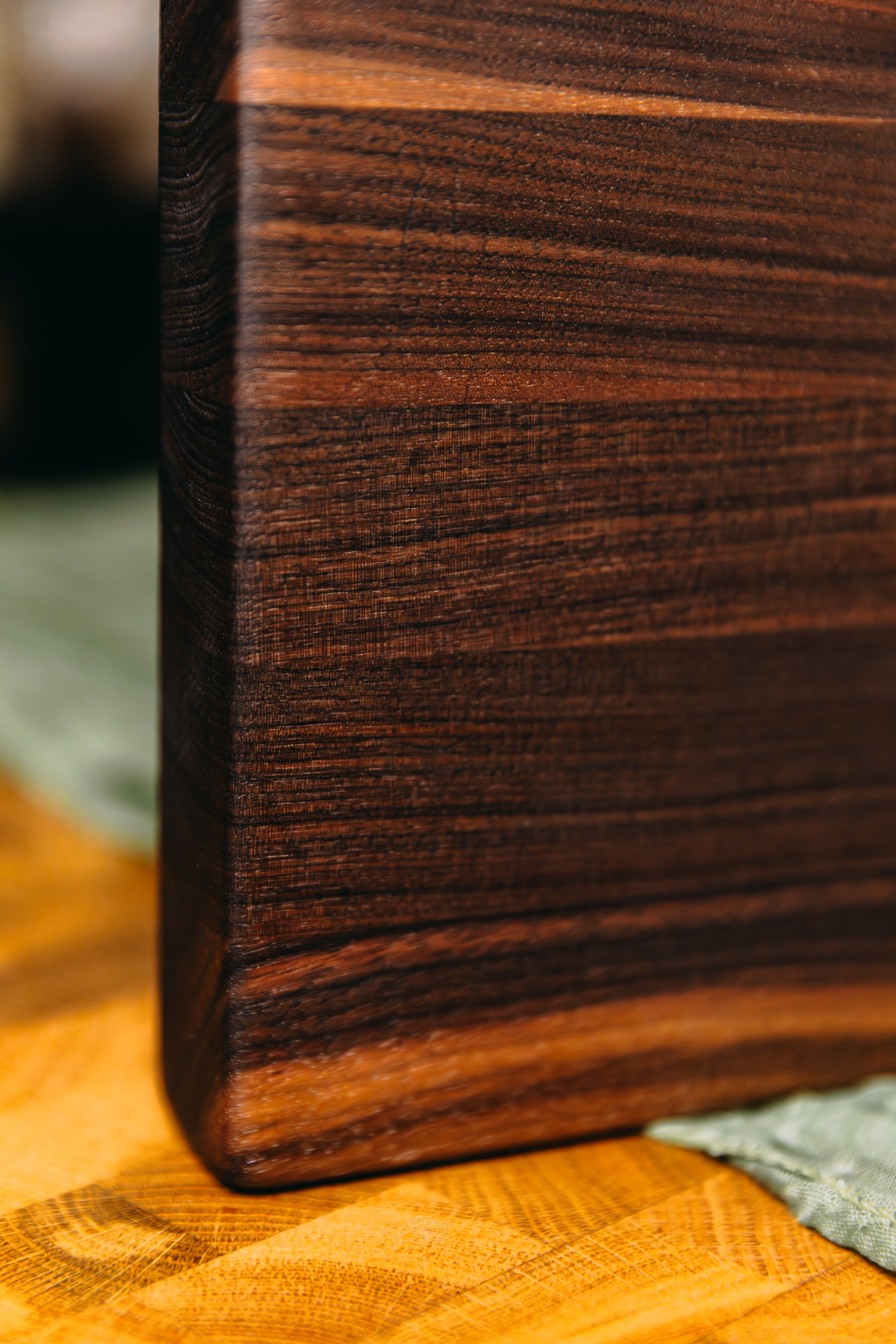 Your board will serve for many years with just a bit of love. After each use, hand wash with warm water and mild soap — never soak or put it in the dishwasher. Dry it upright and oil it regularly with food-safe mineral oil or board conditioner to keep it from drying out or cracking. With time and care, your board will deepen in color, smooth with age, and carry the marks of many good meals.