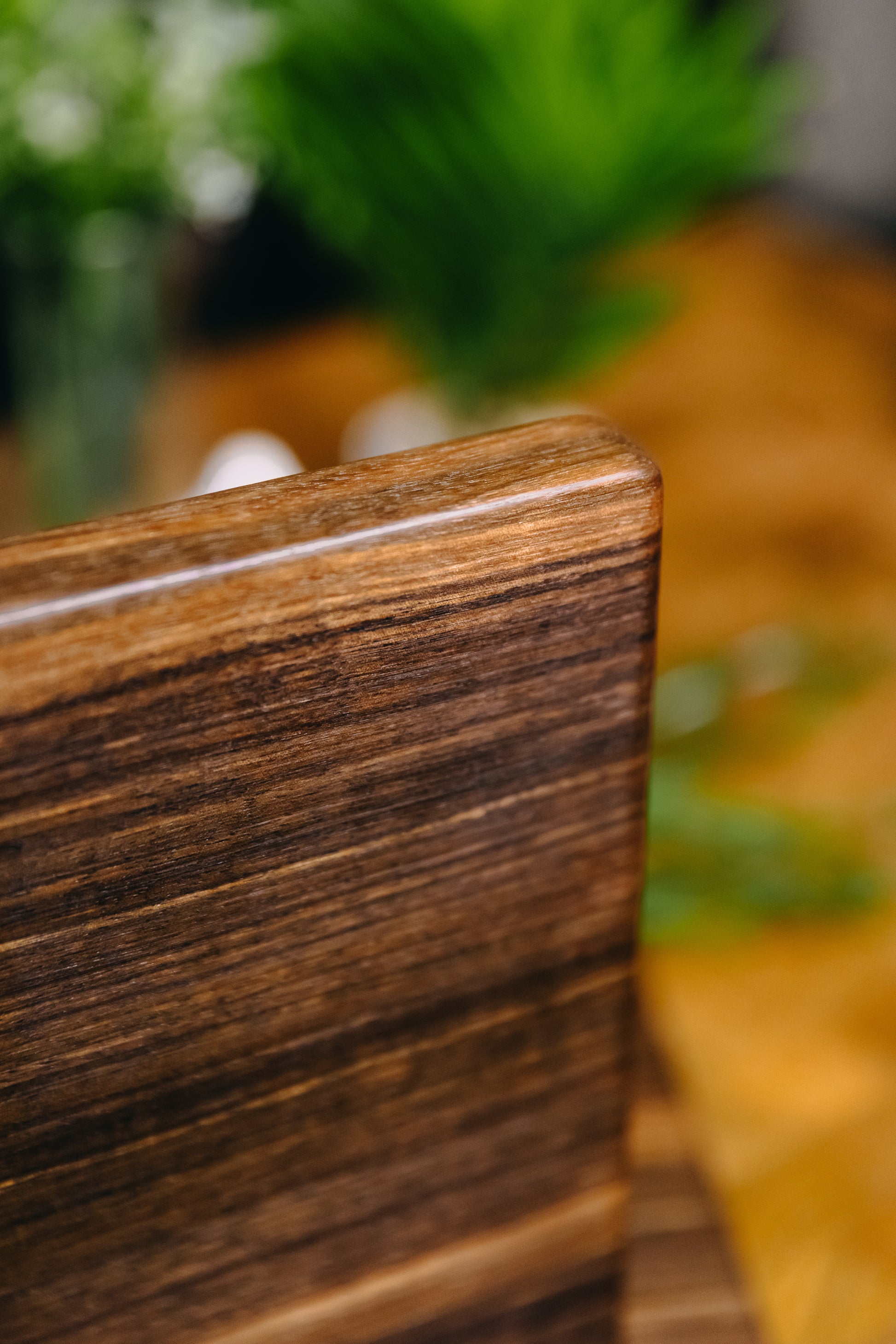 Dark, moody, and richly figured β black walnut is the forestβs drama in hardwood form. The edge grain here runs like winding trails through dusk: deep browns, hints of purple, and the occasional flash of sapwood. A board that balances function and bold visual storytelling.