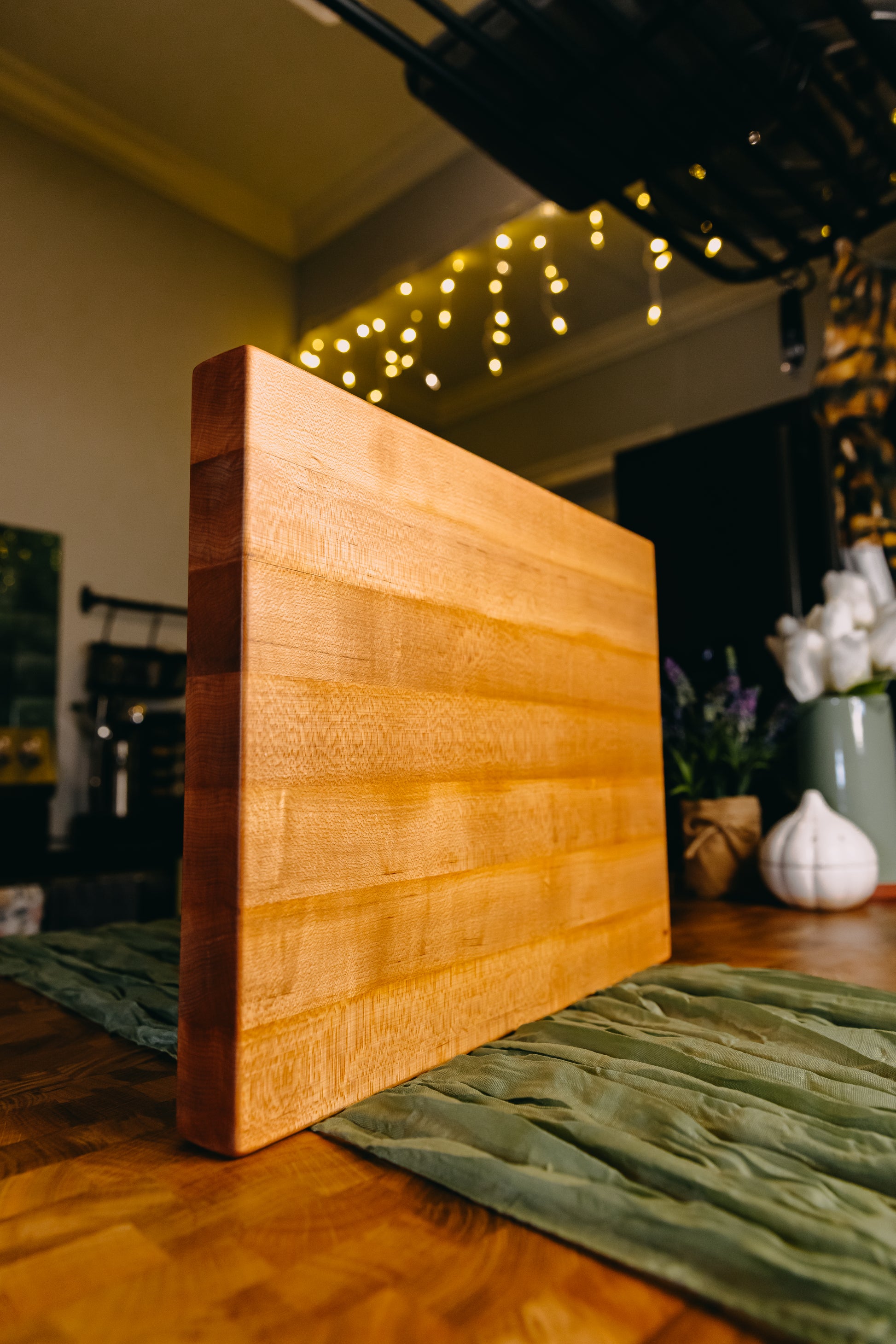 Clean, classic, and reliable — hard maple is the trusted backbone of butcher blocks for a reason. Its tight grain and pale, creamy color make it both understated and elegant. Durable without fuss, this board is built for daily use and lifelong service.