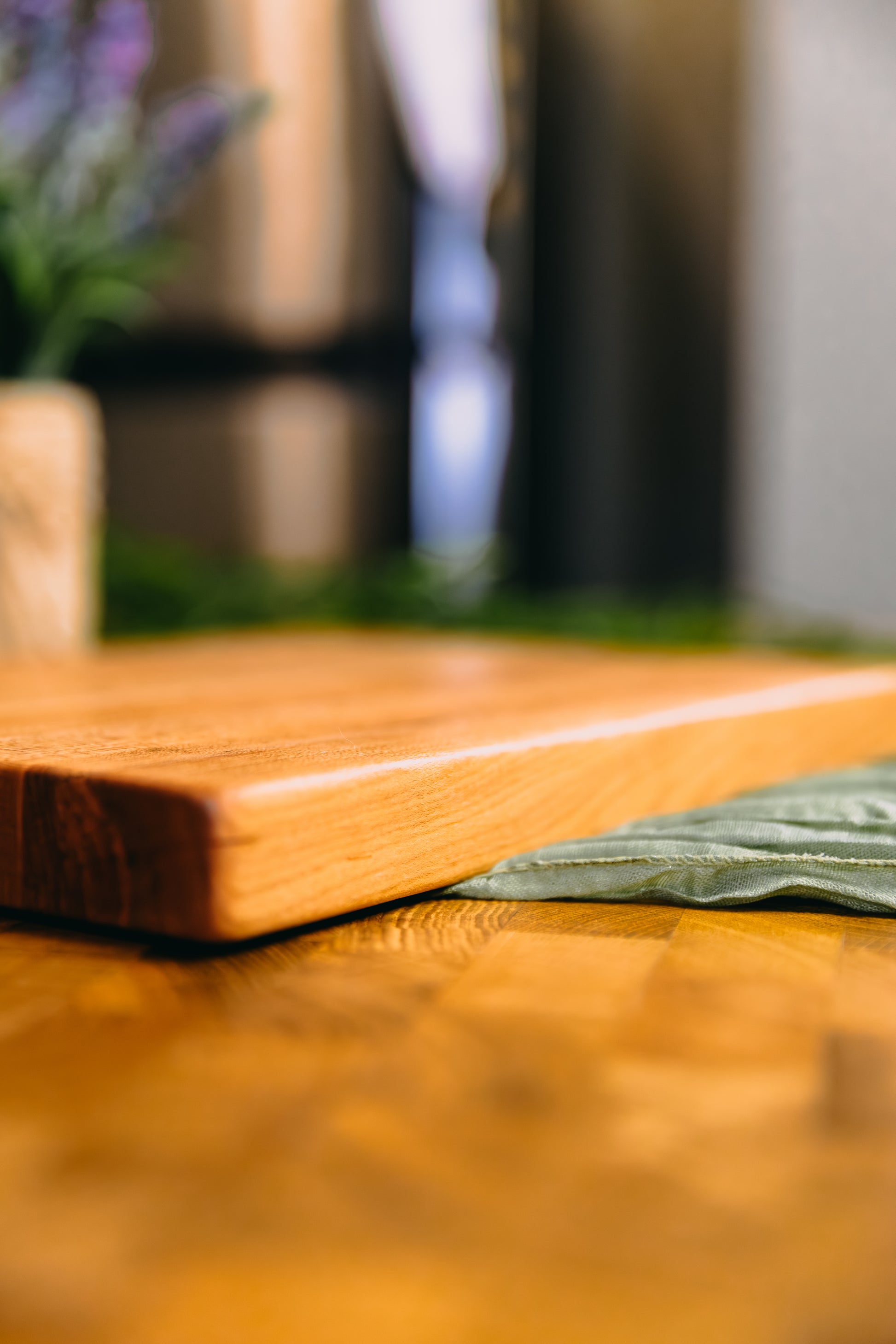 Your board will serve for many years with just a bit of love. After each use, hand wash with warm water and mild soap — never soak or put it in the dishwasher. Dry it upright and oil it regularly with food-safe mineral oil or board conditioner to keep it from drying out or cracking. With time and care, your board will deepen in color, smooth with age, and carry the marks of many good meals.
