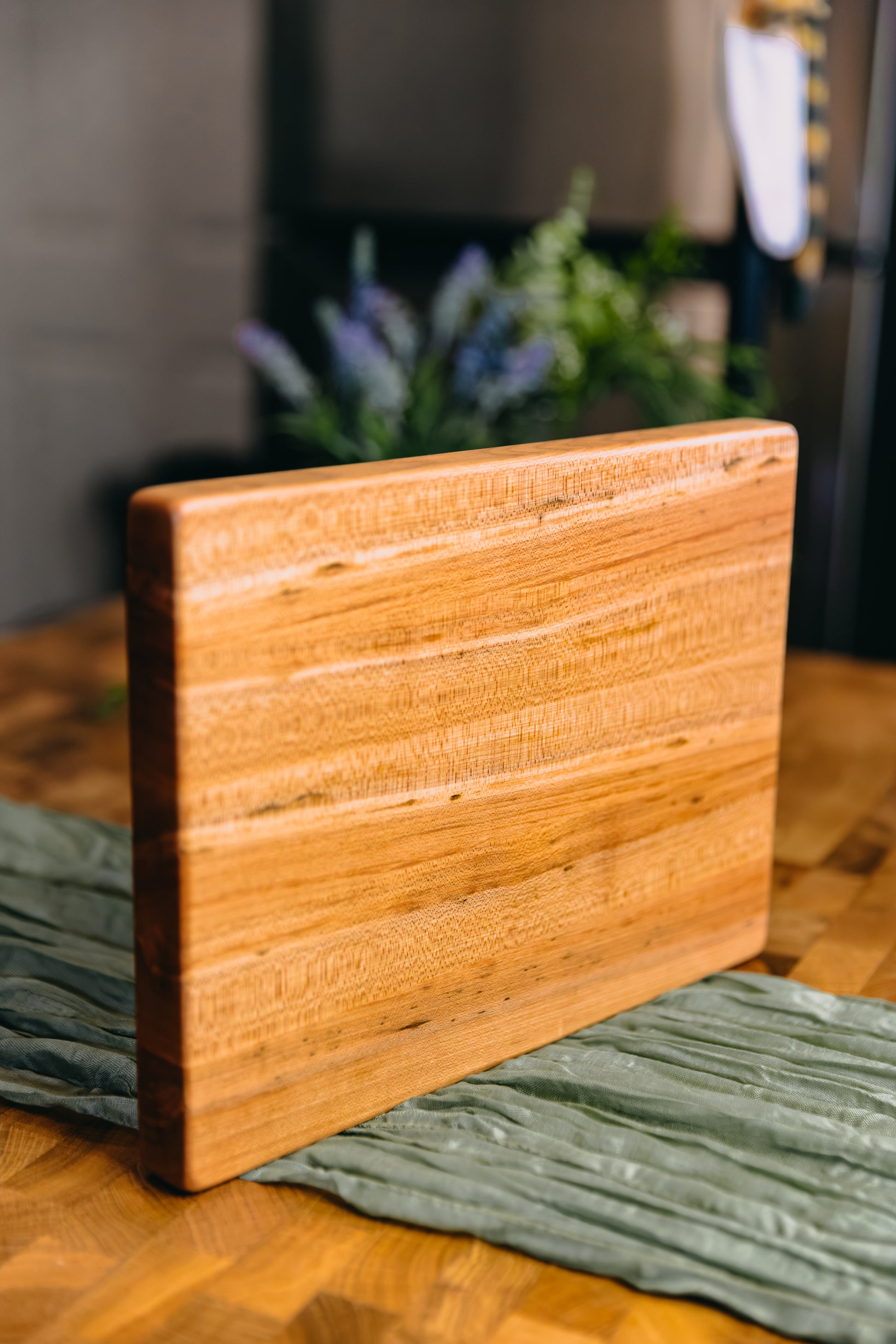 Your board will serve for many years with just a bit of love. After each use, hand wash with warm water and mild soap — never soak or put it in the dishwasher. Dry it upright and oil it regularly with food-safe mineral oil or board conditioner to keep it from drying out or cracking. With time and care, your board will deepen in color, smooth with age, and carry the marks of many good meals.